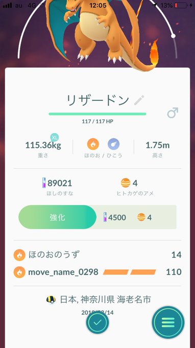 ポケモンgo 進化後のリザードンのわざが Move Name 0298 でバグってると話題に まとめダネ