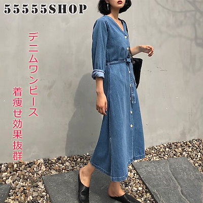 Qoo10 腰止めひも スリム デニム ワンピース レディース服